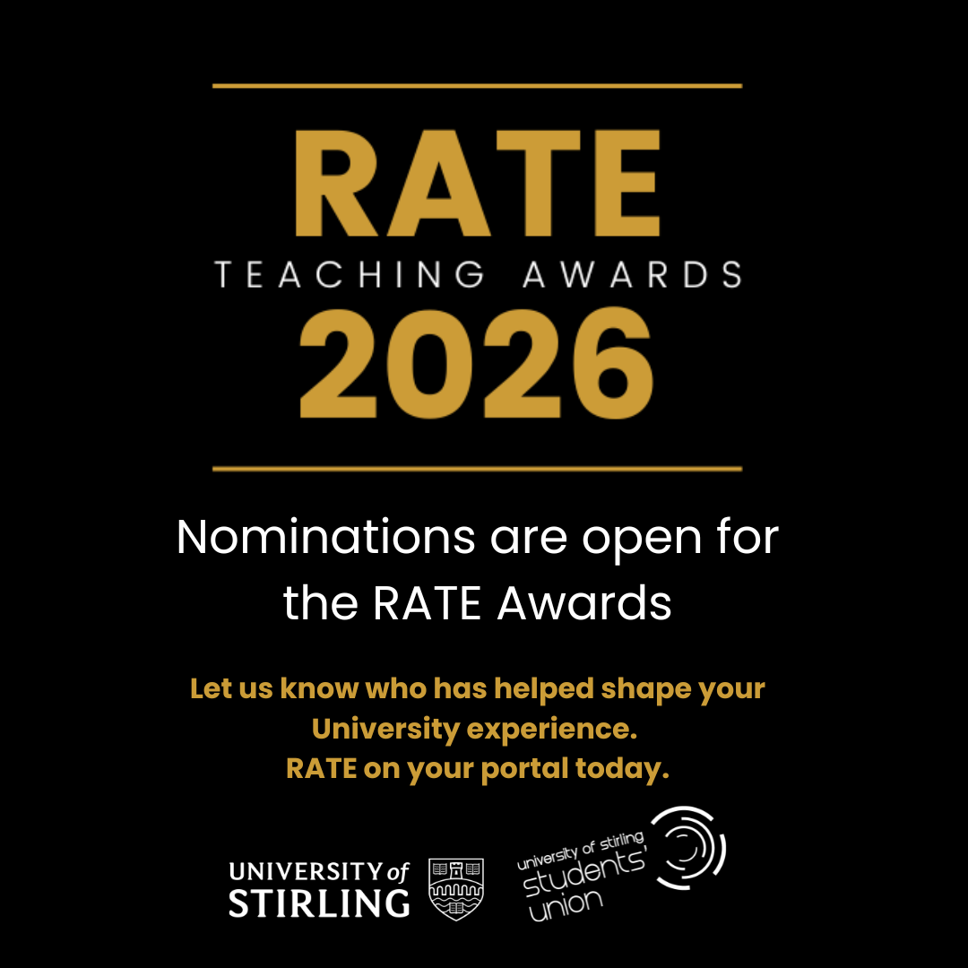 Our student-led RATE Awards recognise exceptional people and teams at the University of Stirling. This is your chance to celebrate excellent teaching, academic mentors, tutors, teams, and departments across the University. The categories for 2026 are: